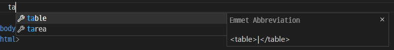 | 가 2개 이상일경우, 첫번째 |에 원하는 속성값을 입력해 준 뒤 Tab을 눌러주면 다음 | 위치로 커서가 이동하게 된다는 뜻이다.