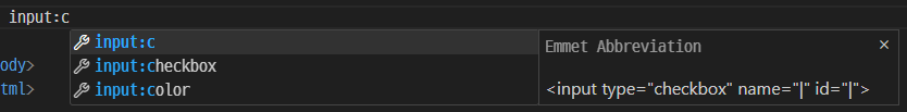예시에서 <input type="checkbox" name="|" id="|"> 이 자동 완성된다고 나오는데, 여기서 "|" 는,