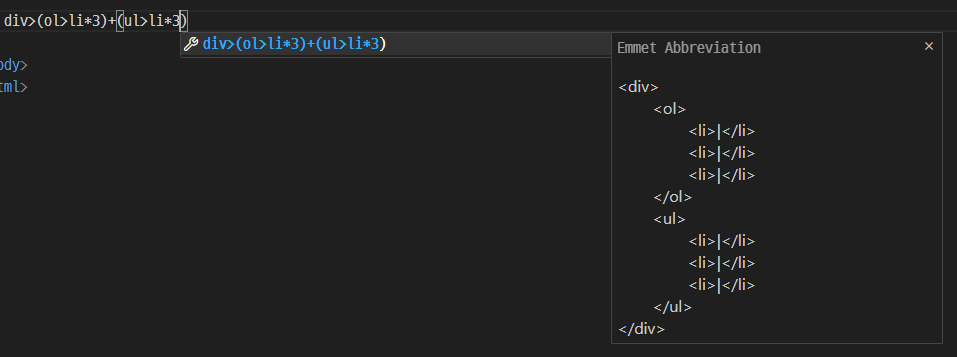 단일 태그가 아닌 시작태그와 종료태그가 있는 경우엔 종료태그까지 자동으로 완성 시켜준다.